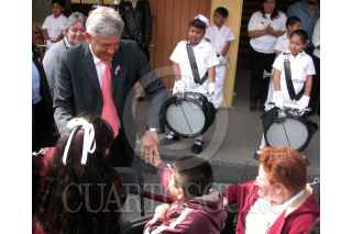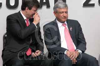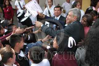 MEXICO, D.F., 23FEBRERO2005.- Andrés Manuel López Obrador, jefe de gobierno y Mercelo Ebrard, secretario de Desarrollo Social, supervisaron del programa de desayunos escolares en la primaria "Jose Romero" . FOTO: Natalia Paredes/CUARTOSCURO.COM