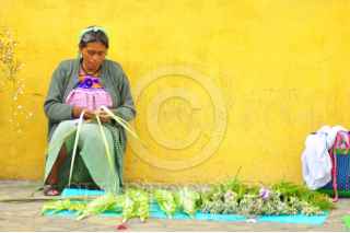 COMITÁN, CHIAPAS, 25MARZO2018.- Con el domingo de ramos inicia la Semana Santa para los creyentes católicos, fecha en que es aprovechada por los artesanos indígenas que llegan a la plaza central de Comitán de Domínguez en Chiapas, para tejer palmas con sus manos y que sean bendecidas; una tradición que ha pasado de generación en generación. FOTO: TOÑO AGUILAR /CUARTOSCURO.COM