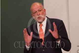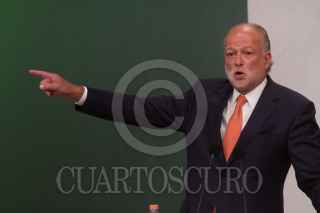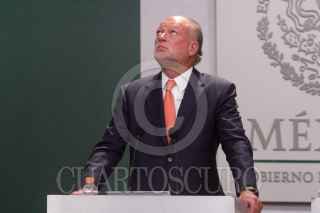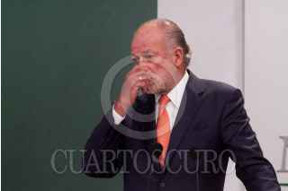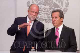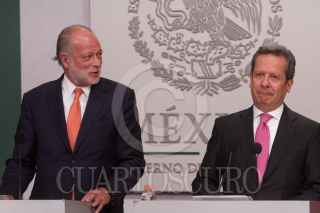 CIUDAD DE MÉXICO, 26MARZO2018.- Federico Patiño, director general de Grupo Aeroportuario de la Ciudad de México (GACM), ofreció una conferencia de prensa en la cual preciso algunos datos del proyecto Nuevo Aeropuerto Internacional de la Ciudad de México (NAICM), señalo que cancelar este proyecto representaría una pérdida de aproximadamente 120 mil millones de pesos, además de 45 mil empleos directos que en estos momentos se están generando, esto sin contar los 450 mil empleos que se generarían cuando el nuevo aeropuerto estuviera funcionando al cient por ciento. Lo acompaño el Vocero de la Presidencia, Eduardo Sánchez. FOTO: MOISÉS PABLO /CUARTOSCURO.COM