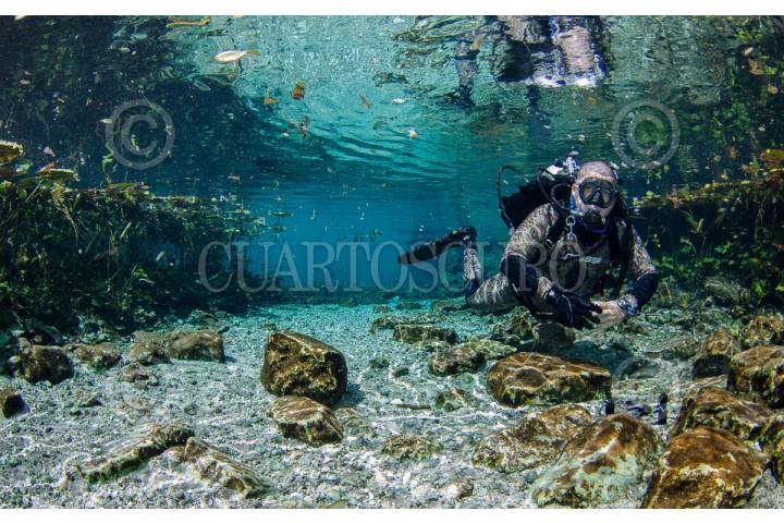 MÉRIDA, YUCATÁN, 26MARZO2018.- Buzos de la zona arqueológica de Dzibilchaltún en Yucatán, encontraron una nueva caverna subterránea en el cenote de Xlacah donde se localizaron restos humanos, de animales, vasijas, ollas y demás material arquelógico. FOTO: ERICK SOSA / INAH /CUARTOSCURO.COM