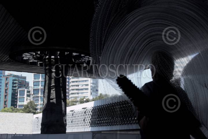 CIUDAD DE MÉXICO, 26MARZO2018.- Comenzaron los trabajos de limpieza del aluminio del conocido “Paraguas” del Museo Nacional de Antropología. Los trabajos se realizaran con hielo seco a presión y se calcula tardarán alrededor de dos meses en concluir, el mantenimiento es un donativo de las empresas de Kärcher y Praxair México. FOTO: GALO CAÑAS /CUARTOSCURO.COM