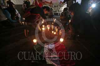 GUADALAJARA, JALISCO, 26MARZO2018.- Decenas de personas a manera de protesta marcharon del Parque Rojo en el primer cuadro de la ciudad hasta la Glorieta de los Niños Héroes o bien la renombrada por los inconformes, Glorieta de los Desaparecidos, en el lugar prendieron veladoras y gritaron consignas en contra del gobierno por la desaparición de tres estudiantes de la carrera de Cine de la Universidad de Medios Audiovisuales del CAAV y uno mas de la carrera de medicina del CUCS de la Universidad de Guadalajara, mismo que apareció sin vida el día de ayer por suicidio en la barranca de Huentitán según versiones oficiales. FOTO: FERNANDO CARRANZA GARCIA / CUARTOSCURO.COM