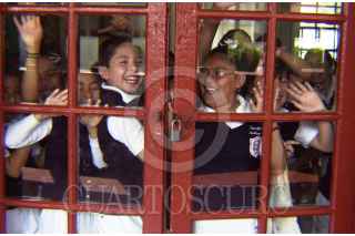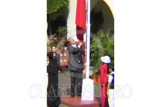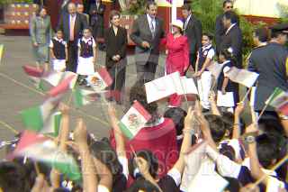MEXICO, D.F. 24FEBRERO2005.- Vicente Fox Quesada, presidente de México, y Marta Sahagún de Fox, estuvieron presentes en la ceremonia de izamiento de bandera conmemorativa al día del lávaro patrio en la escuela primaria Benito Juárez. FOTO: Iván Stephens/CUARTOSCURO.COM