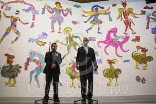CIUDAD DE MÉXICO, 27MARZO2018.- Arturo López, curador de la exposición de Chucho Reyes La Fiesta del Color, y Miguel Fernandez Félix, director del Museo del Palacio de Bellas Artes, abrieron las puertas para un recorrido para medios por las diversas salas de la exposición Jesús Reyes Cordero. FOTO: TERCERO DÍAZ /CUARTOSCURO.COM