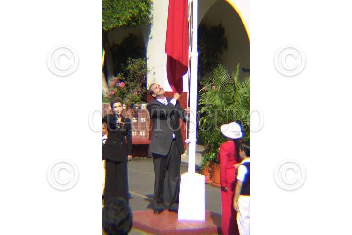 MEXICO, D.F. 24FEBRERO2005.- Vicente Fox Quesada, presidente de México, y Marta Sahagún de Fox, estuvieron presentes en la ceremonia de izamiento de bandera conmemorativa al día del lávaro patrio en la escuela primaria Benito Juárez. FOTO: Iván Stephens/CUARTOSCURO.COM