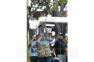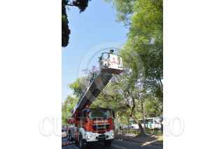 CIUDAD DE MÉXICO, 27MARZO2018.- Equipos de emergencia e integrantes de la brigada de rescate animal, realizaron maniobras para capturar un mono que se escapó de una casa y se encontraba en un árbol ubicado en el camellón de Paseo de la Reforma y Castillo Mirasol en la colonia Lomas de Chapultepec. FOTO: ARMANDO MONROY /CUARTOSCURO.COM