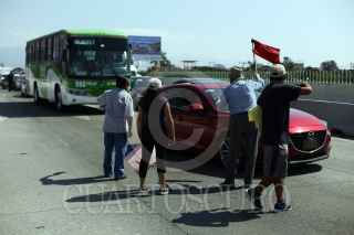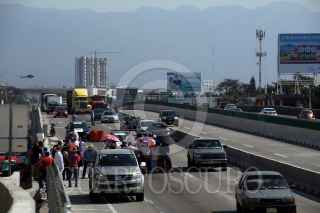 CUERNAVACA, MORELOS, 27MARZO2018.-Vecinos de la colonia Satélite protestaron cerrando dos carriles laterales en la dirección norte sur del paso exprés. Los inconformes piden que la Secretaria de Comunicaciones y Transportes cumpla con la rehabilitación de algunas calles que resultaron afectadas por la obra de ampliación de la vía. La protesta genero trafico y molestia en los vacacionistas que se dirigen al sur del país. FOTO: MARGARITO PÉREZ RETANA /CUARTOSCURO.COM