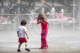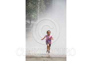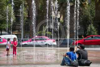 CIUDAD DE MÉXICO, 28MARZO2018.- Niños y jóvenes se divierten en la plaza Tlaxcoaque del centro histórico de la Ciudad. Aprovechan cualquier fuente para mitigar el calor que azota la capital Mexicana. FOTO: VICTORIA VALTIERRA /CUARTOSCURO.COM