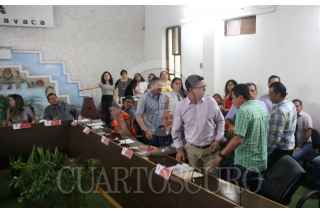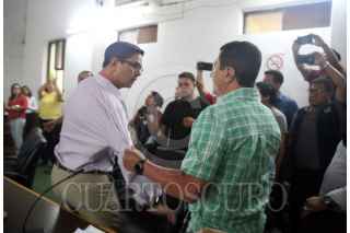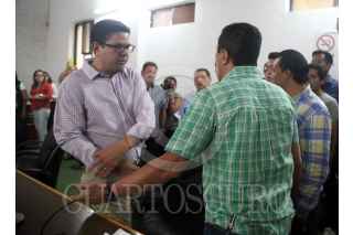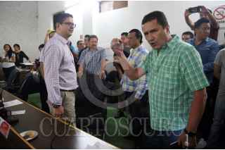 CUERNAVACA, MORELOS, 28MARZO2018.- El empresario Jesús García Rodríguez, padre del organizador de la Feria Cuernavaca, Juan Manuel García Bejarano (asesinado en abril de 2017 durante una cabalgata por calles de la ciudad) irrumpió este miércoles en la sesión de cabildo y enfrentó a empujones al regidor Jorge Dada para exigirle el pago de un millón 300 mil pesos que, presuntamente, fue entregado a los regidores para rescindir el contrato con el concesionario anterior. Ante la indiferencia de Jorge Dada y la pregunta de si estaba en estado de ebriedad, el empresario insultó y empujó al funcionario, quien se refugió en su oficina. La sesión de cabildo fue suspendida. FOTO: MARGARITO PÉREZ RETANA /CUARTOSCURO.COM