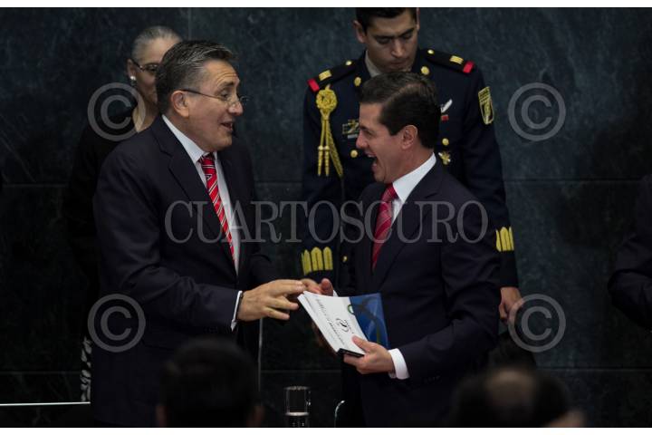 CIUDAD DE MÉXICO, 28MARZO2018.- Enrique Peña Nieto, presidente de la República, y Luis Raúl González Pérez, presidente la Comisión Nacional de Derechos Humanos, durante la entrega del informe de actividades 2017 de la CNDH. FOTO: GALO CAÑAS /CUARTOSCURO.COM