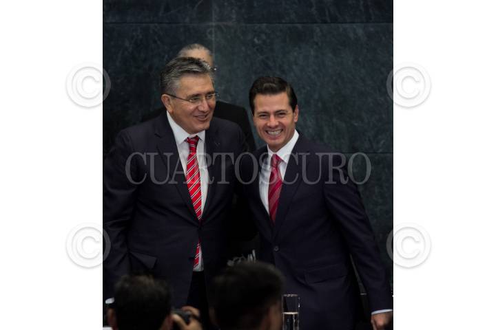 CIUDAD DE MÉXICO, 28MARZO2018.- Enrique Peña Nieto, presidente de la República, y Luis Raúl González Pérez, presidente la Comisión Nacional de Derechos Humanos, durante la entrega del informe de actividades 2017 de la CNDH. FOTO: GALO CAÑAS /CUARTOSCURO.COM