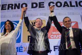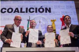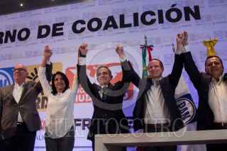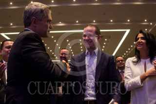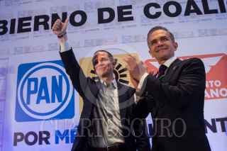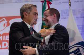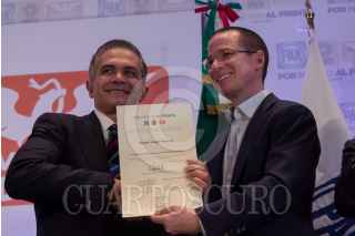 CIUDAD DE MÉXICO, 28MARZO2018.- Miguel Ángel Mancera, jefe de gobierno de la Ciudad de México, y Ricardo Anaya, candidato a la presidencia por la coalición “Por México al Frente”, durante la firma de lineamientos del proyecto de gobierno de dicha coalición, así como la designación de jefe de gobierno como coordinador del mismo. FOTO: GALO CAÑAS /CUARTOSCURO.COM
