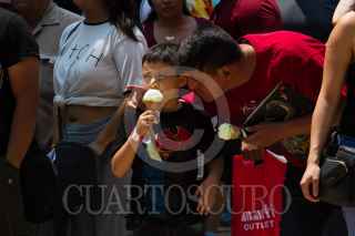 CIUDAD DE MÉXICO, 29MARZO2018.- Padre e hijo mitigan el calor con un helado en la calle de Madero, en el Centro Histórico. FOTO: MOISÉS PABLO /CUARTOSCURO.COM