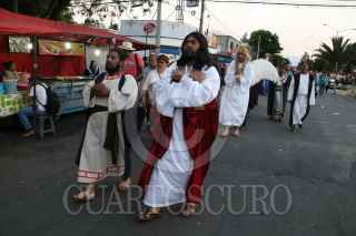 CIUDAD DE MÉXICO, 29MARZO2018.- Ante actos donde se niega la participacion a jóvenes de barrios de Iztapalapa para participar en actividades de la semana santa por parte del comite organizador Cossiac, algunas personas realizaron su representación de la Pasion de Cristo en barrios aledaños como es el caso de la colonia Leyes de Reforma que se ubica a pocos minutos de la sede delegacional. FOTO: SAÚL LÓPEZ /CUARTOSCURO.COM