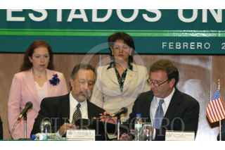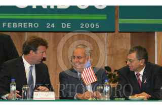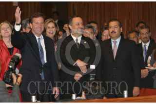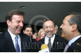 MEXICO, D.F. 24FEBRERO2005.- Tony Garza, embajador de Estados Unidos en México, José Alberto Aguilar Iñarritú, presidente del Grupo de Amigos México-Estados Unidos y Manlio Fabio Beltrones, presidente de la mesa directiva de la cámara de diputados se dirigen al salón de plenos. FOTO: Nelly Salas/CUARTOSCURO.COM