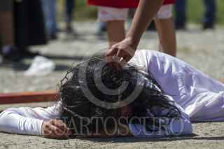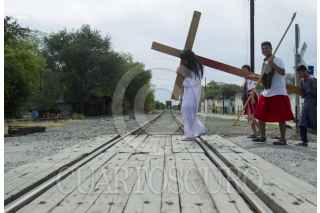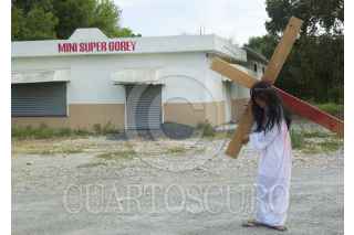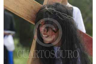 CADEREYTA JIMÉNEZ, NUEVO LEÓN, 30MARZO2018.- Fieles católicos de la comunidad de San Juan realizan el viacrusis por las calles principales del poblado. FOTO: GABRIELA PÉREZ MONTIEL /CUARTOSCURO.COM