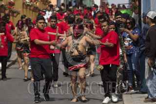 PUEBLA, PUEBLA, 30MARZO2018.- Como cada viernes santo, se realizó la procesión de "Engrillados" del municipio de Atlixco, en el cual mas de cien penitentes participaron cargando pesadas cadenas y espinas en su cuerpo, recorrieron más de 2 kilómetros desde su salida de la capilla de la Tercera Orden hasta llegar al templo de San Francisco, como parte de las tradiciones religiosas de esta semana santa. FOTO: HILDA RÍOS /CUARTOSCURO.COM