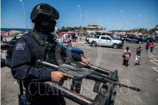 NAVOLATO, SINALOA, 31MARZO2018.- Elementos de la policia Estatal realizaron un operativo de seguridad por las playas de Altata como medida de prevención para los miles de turistas que arribaron en estas vacaciones de semana santa. FOTO: RASHIDE FRIAS /CUARTOSCURO.COM