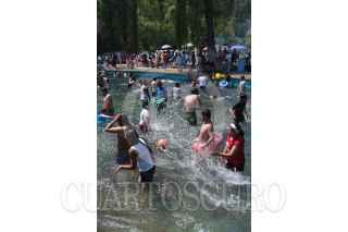 ALMOLOYA DE JUÁREZ, ESTADO DE MÉXICO, 31MARZO2018.- Ante el anuncio de varios municipios mexiquenses de imponer multas por desperdiciar agua en este Sábado de Gloria, algunos paseantes optaron por asistir a darse un chapuzón en las albercas del Ojo de Agua en Almoloya de Juárez. FOTO: ARTEMIO GUERRA BAZ / CUARTOSCURO.COM
