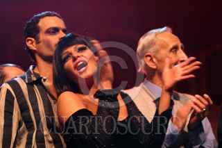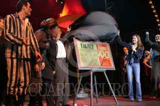 MEXICO, D.F. 25FEBRERO2005.- Las interpretes, Daniela Romo y Tania Libertad, durante la develación de placa de las 100 representaciones de la puesta en escena ¨Cabaret¨. FOTO: Sandra Perdomo/CUARTOSCURO.COM