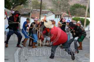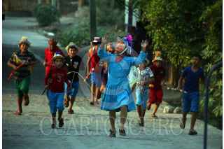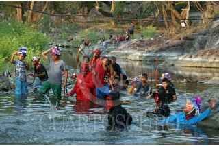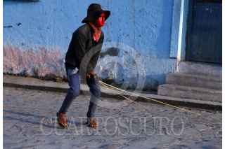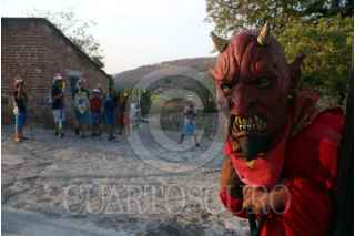 TLAQUILTENANGO, MORELOS, 31MARZO2018.- Los habitantes del pueblo de Huautla (situado al extremo sur del estado), participan de la celebración de Sábado de Gloria, cuya singularidad recae en un grupo que se denomina "Mototocos” (portando una máscara roja de edad antiquísima, y que son Judas, Barrabás y Batea). Es ésta ocasión los Mototocos van a una poza de agua del río y se bañan, después "Judas" y "Barrabás" son tomados presos y amarrados, los cuales son llevados por las calles azotados con varas por "La Mototoca" y otro enmascarado. Finalmente, los llevan a la iglesia donde son amarrados a un árbol y vueltos a azotar sin clemencia. FOTO: MARGARITO PÉREZ RETANA /CUARTOSCURO.COM