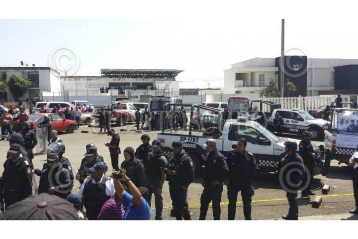 AMATLAN, VERACRUZ, 01ABRIL2018.- Siete policías sin vida fue el saldo que dejó el motín de el penal La Toma en Amatlan de los Reyes, además de 13 reos heridos. Los internos exigieron la destitución del director del penal, así como la del jefe de custodios. Elementos de seguridad resguardaron el inmueble para evitar el acceso de familiares. FOTO: CUARTOSCURO