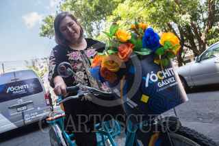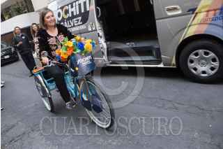 CIUDAD DE MÉXICO, 02ABRIL2018.- Xóchitl Galvez, candidata a senadora por el PAN, presentó la Xóchicleta, y su closet de ropa dentro de su camioneta de campaña. FOTO: TERCERO DÍAZ /CUARTOSCURO.COM