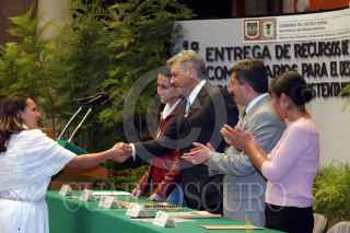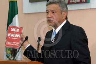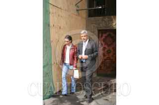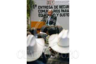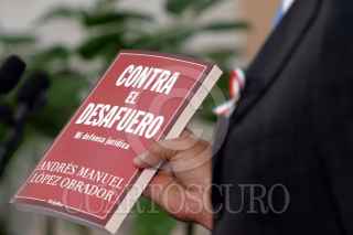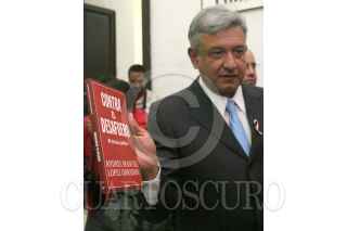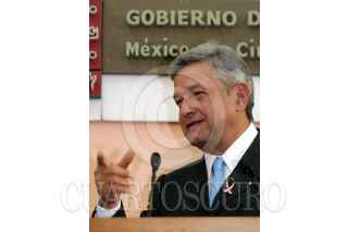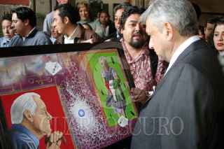 MEXICO, D.F., 25FEBRERO2005.- Andres Manuel López Obrador, jefe de gobierno, entregó los Fondos Comunitarios para el Desarrollo Rural, en el Museo de la Ciudad de México. Al salir fue abordado por unos personas que le regalaron una pintura. FOTO: Moisés Pablo/CUARTOSCURO.COM