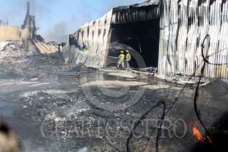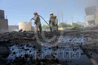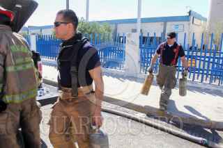 CIUDAD JUÁREZ, CHIHUAHUA, 03ABRIL2018.- Un incendio consumió por la noche gran parte de la maquiladora BM de México, ubicada en el Parque Industrial Gema II al sur de la ciudad. Además del desalojo del personal, debido a las dimensiones del incendio, varias cuadras de la colonia Andrés Figueroa fueron evacuadas, ante el riesgo de que el fuego se extendiera a las viviendas aledañas. FOTO: NACHO RUIZ /CUARTOSCURO.COM