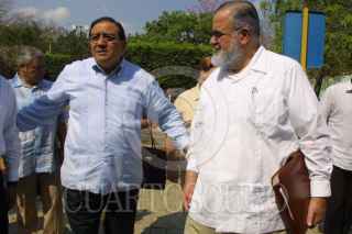 TUXTLA GUTIERREZ, CHIAPAS 25FEBRERO2005.- El gobernador Pablo Salazar acompaña al presidente de la CNDH José Luis Soberanes despues de firmar un convenio de defensa de derechos humanos en el estado. FOTO: Oscar León/CUARTOSCURO.COM