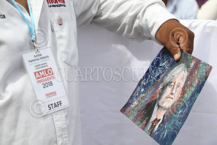 NUEVO LAREDO TAMAULIPAS, 05ABRIL2018.- Andrés Manuel López Obrador candidato de MORENA a la presidencia de la república, se reunió con militantes su partido en la plaza Hidalgo en la ciudad fronteriza de Nuevo Laredo para darles a conocer su proyecto de gobierno. FOTO: SAÚL LÓPEZ /CUARTOSCURO.COM