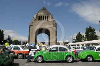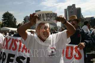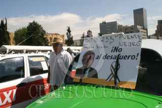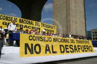 MEXICO, D.F. 26FEBRERO2005.- Integrantes del Consejo Nacional del Transporte realizaron un manifestación en contra del desfuero del jefe de gobierno de la ciudad de México en el monumento a la Revolución. FOTO: Nelly Salas/CUARTOSCURO.COM