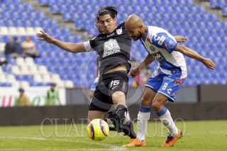 PUEBLA, PUEBLA, 06ABRIL2018.- Erick Gutiérrez y Francisco Acuña disputan el balón durante jugada del partido entre el Club Puebla y los Tuzos del Pachuca con marcador final 2-6 correspondiente a la jornada 14 del torneo Clausura 2018 de la Liga MX celebrado en el estadio Cuauhtémoc. FOTO: HILDA RÍOS/CUARTOSCURO.COM