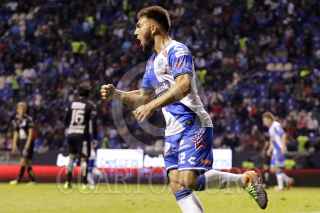 PUEBLA, PUEBLA, 06ABRIL2018.- El jugador Lucas Cavallini festeja el gol anotado durante el partido entre el Club Puebla y los Tuzos del Pachuca con marcador final 2-6 correspondiente a la jornada 14 del torneo Clausura 2018 de la Liga MX celebrado en el estadio Cuauhtémoc. FOTO: HILDA RÍOS/CUARTOSCURO.COM