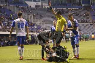 PUEBLA, PUEBLA, 06ABRIL2018.- Expulsión del jugador Lucas Cavallini durante jugada del partido entre el Club Puebla y los Tuzos del Pachuca con marcador final 2-6 correspondiente a la jornada 14 del torneo Clausura 2018 de la Liga MX celebrado en el estadio Cuauhtémoc. FOTO: HILDA RÍOS/CUARTOSCURO.COM