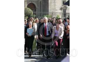 MEXICO, D.F. 03MARZO2005.- Andrés Manuel López Obradror, jefe de gobierno de la ciudad de México a su llegada a la plancha del zócalo capitalino, donde entregó microcreditos. FOTO: Nelly Salas/CUARTOSCURO.COM