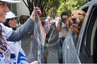 CIUDAD DE MÉXICO, 07ABRIL2018.- Panistas de la Ciudad de México, volantearon en el cruce de Insurgentes y Eje 7 repartieron gorras y volantes, encabezados por Mauricio Tabe y Xóchitl Galvez. FOTO: VICTORIA VALTIERRA /CUARTOSCURO.COM