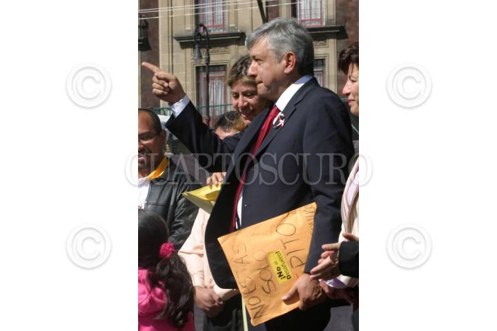 MEXICO, D.F. 03MARZO2005.- Andrés Manuel López Obrador, jefe de gobierno de la ciudad de México al termino de entrega de microcreditos en la plancha del zócalo capitalino. FOTO: Nelly Salas/CUARTOSCURO.COM