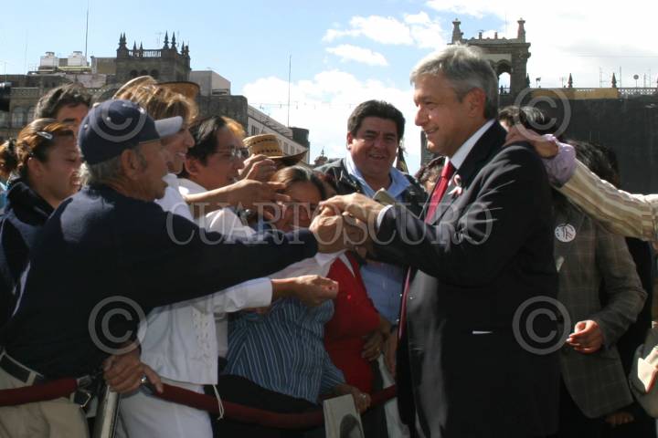 MEXICO, D.F. 03MARZO2005.- Andrés Manuel López Obrador, jefe de gobierno de la ciudad de México al termino de entrega de microcreditos en la plancha del zócalo capitalino. FOTO: Nelly Salas/CUARTOSCURO.COM