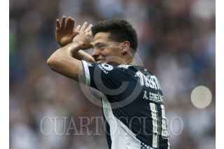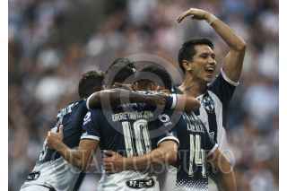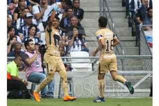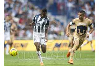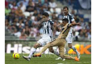 MONTERREY, NUEVO LEÓN, 07ABRIL2018.- Avilés Hurtado del equipo de los Rayados del Monterrey, se disputa el balón con Pablo Barrera del equipo de los Pumas de la UNAM, en el estadio BBVA Bancomer, partido correspondiente a la jornada 14 de la Liga MX, Clausura 2018. Marcador Final: Monterrey: 2 - Pumas: 1 FOTO: GABRIELA PÉREZ MONTIEL /CUARTOSCURO.COM
