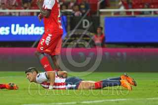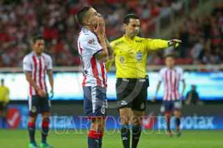 ZAPOPAN, JALISCO. 07ABRIL2018.- Edson Torres jugador de Chivas se lamenta por las fallas, en partido correspondiente a la Jornada 14 del Torneo Clausura 2018, en donde se enfrentan las Chivas de Guadalajara frente a los Tiburones Rojos del Veracruz, en partido que se lleva a cabo en el Estadio Akron. El marcador al final del encuentro fue de 1-0 a favor del equipo visitante. FOTO: FERNANDO CARRANZA GARCIA / CUARTOSCURO.COM