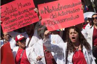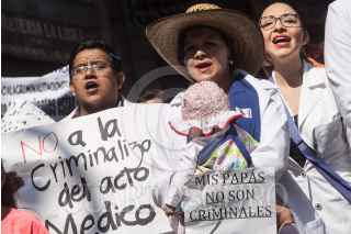 CIUDAD DE MÉXICO, 08ABRIL2018.- Médicos de diferentes hospitales de la República se manifestaron el día de hoy por las calles del Centro Histórico y frente a Palacio Nacional, para exigir al presidente Enrique Peña Nieto la liberación del traumatólogo Luis Alberto Pérez Méndez, quien hace unos días en el estado de Oaxaca tuvo que intervenir quirurgicamente de urgencia a un menor de edad quien falleció en el quirófano. Dadas las circunstancias el médico fue acusado de negligencia y de homicidio doloso y se encuentra en prisión al día de hoy. La causa del fallecimiento del infante se debió a una reacción inesperada por la anestesia. FOTO: TERCERO DÍAZ /CUARTOSCURO.COM