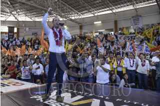 ZACATLÁN, PUEBLA, 08ABRIL2018.- Ricardo Anaya, candidato a la presidencia por la coalición “Por México al Frente”, se reunió con simpatizantes de los partidos que representa en el Polideportivo de esta entidad, como parte de su gira de campaña. FOTO: MARIO JASSO /CUARTOSCURO.COM