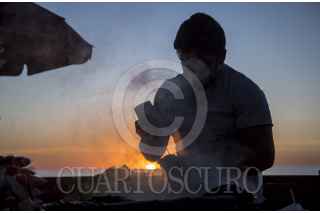 TIJUANA, BAJA CALIFORNIA, 08ABRIL2018.- A lo largo del malecón de Playas de Tijuana es común encontrar de todo tipo de antojos para deleite de los turistas. La imagen corresponde a un vendedor de esquites que labora durante un colorido atardecer. FOTO: OMAR MARTÍNEZ /CUARTOSCURO.COM