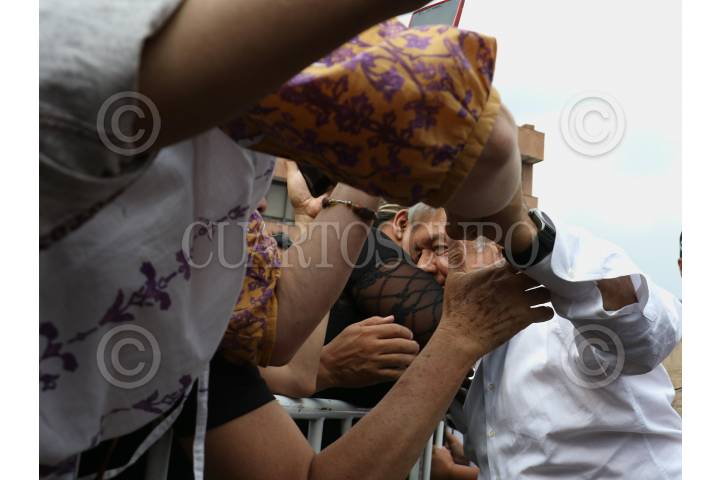 CIUDAD DE MÉXICO, 09ABRIL2018.- Andrés Manuel Lopez Obrador, candidato de MORENA a la presidencia de la república acompañado de Claudia Sheinbaum, candidata de MORENA a gobernadora de la Ciudad de México, durante un acto de campaña en el parque Cañitas ubicado en la delegacion Miguel Hidalgo. En la imagen el piloto de carreras Mario Dominguez asistió como invitado al mitin. FOTO: SAÚL LÓPEZ /CUARTOSCURO.COM
