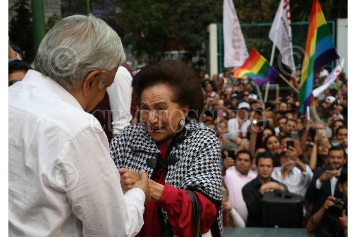 CIUDAD DE MÉXICO, 09ABRIL2018.- Andrés Manuel Lopez Obrador, candidato de MORENA a la presidencia de la república acompañado de Claudia Sheinbaum, candidata de MORENA a gobernadora de la Ciudad de México, durante un acto de campaña en el parque Cañitas ubicado en la delegacion Miguel Hidalgo. En la imagen el piloto de carreras Mario Dominguez asistió como invitado al mitin. FOTO: SAÚL LÓPEZ /CUARTOSCURO.COM