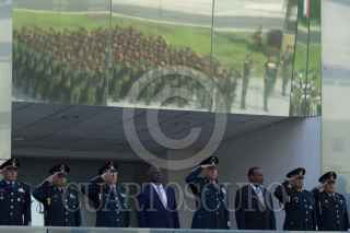 CIUDAD DE MÉXICO, 10ABRIL2018.- Salvador Cienfuegos Zepeda, secretario de la Defensa Nacional, encabezó la ceremonia de recepción de Hervé Davis, ministro de Justicia de la República de Haití, así como del embajador Guy Lamothe, en la Plaza de la Lealtad. FOTO: GALO CAÑAS /CUARTOSCURO.COM