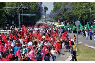 CIUDAD DE MÉXICO, 10ABRIL2018.- Organizaciones campesinas marcharon para conmemorar el aniversario de la muerte del Caudillo del Sur, Emiliano Zpata, el contigente salio del Ángel de la Independencia rumbo a la secretaría de Gobernación, ahí sostuvieron un encuentro con el secretario de Agricultura, Baltazar Hinojosa Ochoa. FOTO: ARMANDO MONROY /CUARTOSCURO.COM
