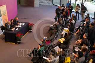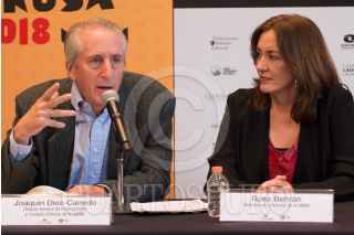 CIUDAD DE MÉXICO, 10ABRIL2018.- Joaquín Díez-Canedo, director general de publicaciones y Fomento Editorial, Rosa Beltrán, Directora de Literatura y Jorge Volpi, coordinador de cultura UNAM, encabezaron la conferencia de prensa para hablar sobre la Fiesta del Libro y la Rosa en la UNAM, la cual se inaugura el próximo 20 de abril. FOTO: ANDREA MURCIA /CUARTOSCURO.COM