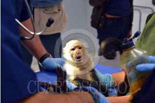 CIUDAD DE MÉXICO, 10ABRIL2018.- La secretaria del Medio Ambiente (SEDEMA), informo que el ejemplar de mono capuchino, el cual el pasado 27 de marzo fue localizado trepado en la copa de un árbol, en las calles de Lomas de Chapultepec, fue rescatado el día de hoy por personal de la Procuraduría Federal de Protección al ambiente (PROFEPA), en coordinación con la Brigada de Vigilancia Animal y la Fundación Antonio Haghenbeck. FOTO: CUARTOSCURO.COM